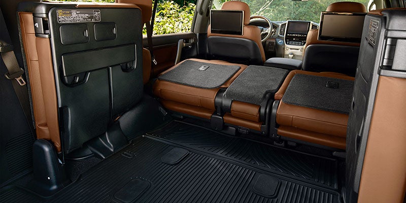 If you opt for the base trim, the Land Cruiser comes standard with three rows that seat up to eight passengers. The Heritage Edition has an available rear-row-delete option that lowers its seating capacity to five but increases cargo volume. Even with the three rows, the Land Cruiser offers up to 82.8 cubic feet of cargo capacity when the seats are folded. The Land Cruiser's base model is well equipped with cozy features such as heated front and second-row seats, a heated steering wheel, and four-zone automatic climate control.