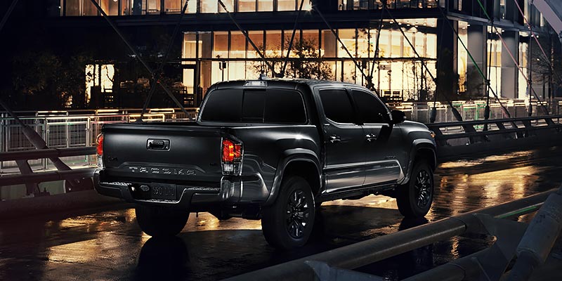 With the 2021 Tacoma's many intelligent safety features, you can enjoy the ride with peace of mind. The truck's pre-collision system scans the road for potential collisions with pedestrians and other vehicles, and can apply the brakes when necessary. An integrated backup camera makes it easy to park and maneuver other tight spots. Other safety features include blind-spot monitoring, automatic high beams, and a lane departure alert.