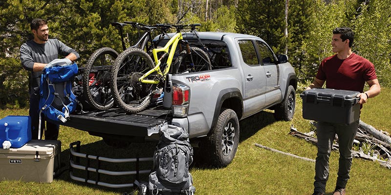 Available in six trim levels, you won't have any problem finding a Tacoma model that's right for you. Projector-beam headlights and a convenient deck rail system are just some of the highlights of the SR trim level. On the SR5, you'll find integrated fog lights that give the truck a more streamlined look.