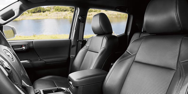 Inside the Toyota Tacoma, you'll find an interior that's practical yet luxurious. The soft-touch seating surfaces are comfortable and resist wear and tear, so they always look like new. The Limited takes the Tacoma's interior luxury to the next level with leather upholstery. Other amenities include a 10-way adjustable driver's seat with lumbar support, dual-zone automatic climate control, and a rear power-sliding window. Features like Apple CarPlay, the Toyata+Alexa app, and a premium JBL audio system will keep you connected and entertained.