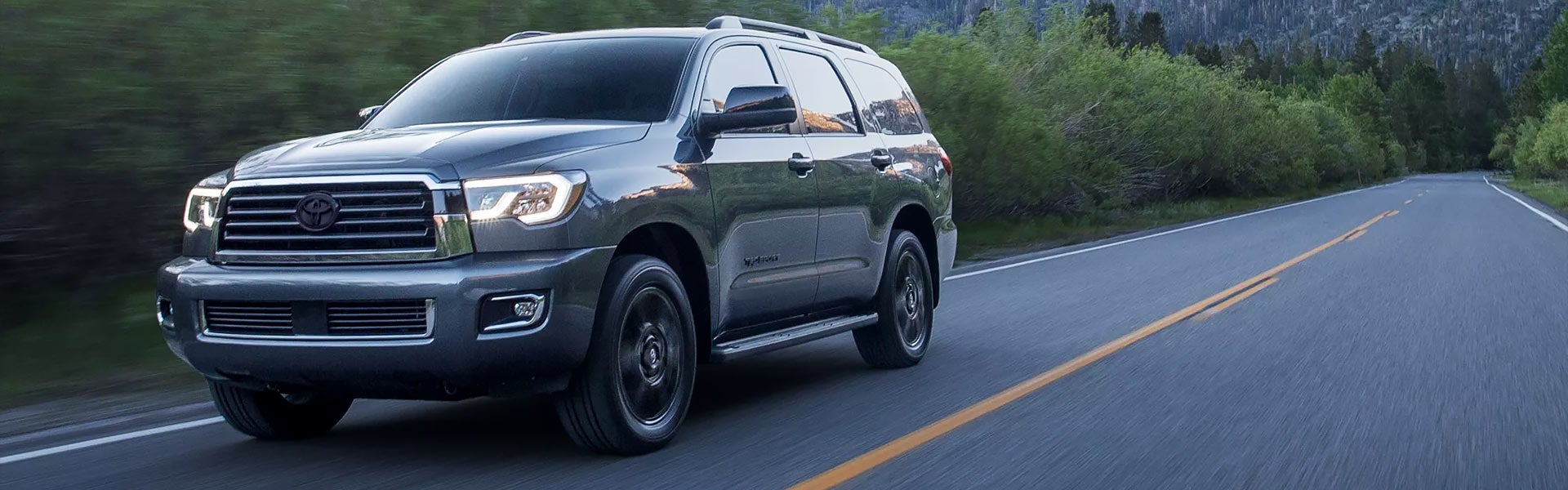 The Nightshade Special Edition Sequoia is the most recent addition to the Sequoia lineup and gives the SUV a more aggressive look with black 20-inch wheels and dark chrome and black exterior trim.
