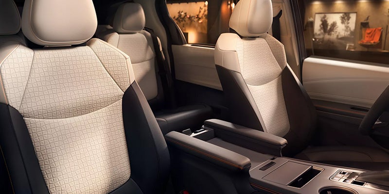 There's room for up to seven or eight in the Sienna, depending on the trim. Features such as three-zone automatic climate control, second-row sunshades, and a power-adjustable driver's seat come standard; moving up through the available trims adds a power-adjustable passenger seat, leather upholstery, and heated seats. Bump up to the Limited for second-row captain's chairs with extendible footrests or to the Platinum for heated second-row seats and premium leather upholstery.