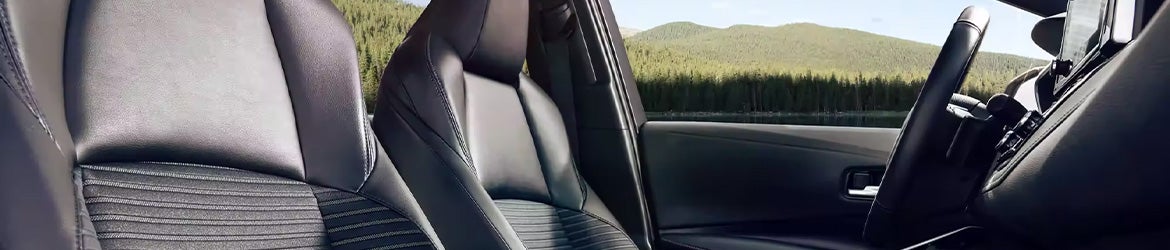 Toyota puts comfortable fabric sports seats in the Corolla interior. Both driver and passenger seats feature six and four adjustable directions, respectively. The tilt/telescopic steering wheel has a host of controls, and leather is available as an upgrade. An 8-inch touchscreen provides audio and entertainment, including six speakers and voice controls. It's compatible with Apple CarPlay, Android Auto, and Bluetooth. The 4.2-inch multi-information instrument display shows statuses and controls, and the car features USB ports and a 12-volt outlet. Keyless entry is also included.