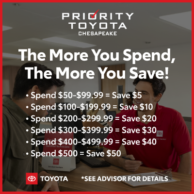 Toyota models only. Cannot be combined with other offers. Coupon has no cash value. Must present coupon at time of service. Discount applied before fees/taxes. See service advisor for details.