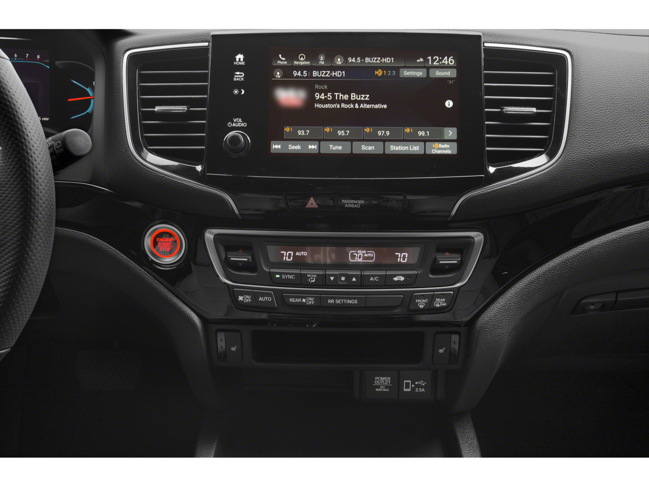 Passport Touring is nicely equipped with Passport Touring, 4D Sport Utility, 3.5L V6 24V SOHC i-VTEC, 9-Speed Automatic, FWD, Platinum White, Black w/Leather-Trimmed Seats, Navigation system: Honda Satellite-Linked Navigation System, 10 Speakers, 4-Wheel Disc Brakes, 4.334 Axle Ratio, A/V remote: CabinControl, ABS brakes, Air Conditioning, Alloy wheels, AM/FM radio: SiriusXM, Apple CarPlay/Android Auto, Auto High-beam Headlights, Auto-dimming door mirrors, Auto-dimming Rear-View mirror, Automatic temperature control, Blind Spot Information (BSI) System warning, Brake assist, Bumpers: body-color, Compass, Delay-off headlights, Driver door bin, Driver vanity mirror, Drivers Seat Mounted Armrest, Dual front impact airbags, Dual front side impact airbags, Electronic Stability Control, Emergency communication system: HondaLink, Exterior Parking Camera Rear, Forward collision: Collision Mitigation Braking System (CMBS) + FCW mitigation, Four wheel independent suspension, Front anti-roll bar, Front Bucket Seats, Front Center Armrest, Front dual zone A/C, Front fog lights, Front reading lights, Fully automatic headlights, Garage door transmitter: HomeLink, Heated door mirrors, Heated Front Bucket Seats, Heated front seats, Heated rear seats, Illuminated entry, Lane departure: Lane Keeping Assist System (LKAS) active, Leather-Trimmed Seats, Low tire pressure warning, Memory seat, Occupant sensing airbag, Outside temperature display, Overhead airbag, Overhead console, Panic alarm, Passenger door bin, Passenger seat mounted armrest, Passenger vanity mirror, Power door mirrors, Power driver seat, Power Liftgate, Power moonroof, Power passenger seat, Power steering, Power windows, Radio data system, Radio: 540-Watt Premium Audio System w/10 Speakers, Rear air conditioning, Rear anti-roll bar, Rear reading lights, Rear seat center armrest, Rear window defroster, Rear window wiper, Remote keyless entry, Roof rack: rails only, Security system, Speed control, Speed-sensing steering, Split folding rear seat, Spoiler, Steering wheel mounted audio controls, Tachometer, Telescoping steering wheel, Tilt steering wheel, Traction control, Trip computer, Turn signal indicator mirrors, Variably intermittent wipers, and Wheels: 20 Solid-Spoke Pewter Gray Alloy.