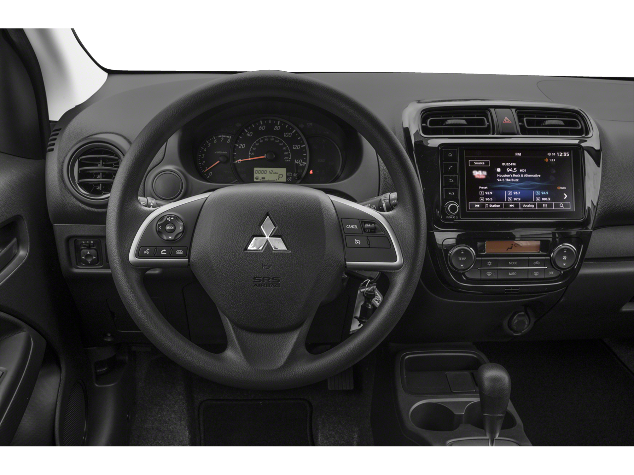 Mirage ES is nicely equipped with Mirage ES, 4D Hatchback, 1.2L 3-Cylinder DOHC MIVEC, CVT, FWD, Blue, Black w/Combination Fabric & Synthetic Leather Seat Trim, 4 Speakers, ABS brakes, Air Conditioning, AM/FM radio, Android Auto & Apple CarPlay, Automatic temperature control, Brake assist, Bumpers: body-color, Driver door bin, Driver vanity mirror, Dual front impact airbags, Dual front side impact airbags, Electronic Stability Control, Exterior Parking Camera Rear, Fabric Seat Trim, Front anti-roll bar, Front Bucket Seats, Front reading lights, Front wheel independent suspension, Illuminated entry, Knee airbag, Low tire pressure warning, Occupant sensing airbag, Overhead airbag, Panic alarm, Passenger door bin, Power door mirrors, Power steering, Power windows, Radio: 7 Smartphone Link Display Audio (SDA), Rear window defroster, Rear window wiper, Remote keyless entry, Speed control, Split folding rear seat, Spoiler, Steering wheel mounted audio controls, Tachometer, Tilt steering wheel, Traction control, Trip computer, Variably intermittent wipers, and Wheels: 14 Steel w/Wheel Covers.