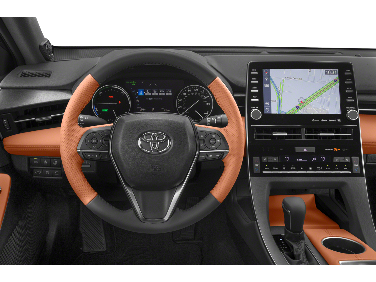Avalon Hybrid Limited is nicely equipped with Avalon Hybrid Limited, 4D Sedan, 2.5L 4-Cylinder DOHC 16V VVT, CVT, FWD, Midnight Black Metallic, Black w/Premium Perforated Leather Seat Trim, Navigation system: Dynamic Navigation (3-year trial), 14 Speakers, 4-Wheel Disc Brakes, 8-way Adjustable Heated/Ventilated Front Seats, ABS brakes, Air Conditioning, Alloy wheels, AM/FM radio: SiriusXM, Apple CarPlay/Android Auto, Auto High-beam Headlights, Auto-dimming door mirrors, Auto-dimming Rear-View mirror, Automatic temperature control, Brake assist, Bumpers: body-color, Compass, Delay-off headlights, Driver door bin, Driver vanity mirror, Dual front impact airbags, Dual front side impact airbags, Electronic Stability Control, Emergency communication system: Safety Connect with 1-year trial, Exterior Parking Camera Rear, Four wheel independent suspension, Front anti-roll bar, Front Bucket Seats, Front Center Armrest, Front dual zone A/C, Front reading lights, Fully automatic headlights, Garage door transmitter: HomeLink, Genuine wood dashboard insert, Genuine wood door panel insert, Heads-Up Display, Heated door mirrors, Heated front seats, Heated rear seats, Heated steering wheel, Illuminated entry, Knee airbag, Low tire pressure warning, Memory seat, Occupant sensing airbag, Outside temperature display, Overhead airbag, Overhead console, Panic alarm, Passenger door bin, Passenger vanity mirror, Power door mirrors, Power driver seat, Power moonroof, Power passenger seat, Power steering, Power windows, Premium Perforated Leather Seat Trim, Radio data system, Radio: Premium Audio w/Dynamic Navigation, Rear anti-roll bar, Rear reading lights, Rear seat center armrest, Rear side impact airbag, Rear window defroster, Remote keyless entry, Security system, Speed control, Speed-sensing steering, Split folding rear seat, Steering wheel mounted audio controls, Telescoping steering wheel, Tilt steering wheel, Traction control, Trip computer, Turn signal indicator mirrors, Variably intermittent wipers, Ventilated front seats, and Wheels: 18 x 8.0 Super Chrome Alloy.