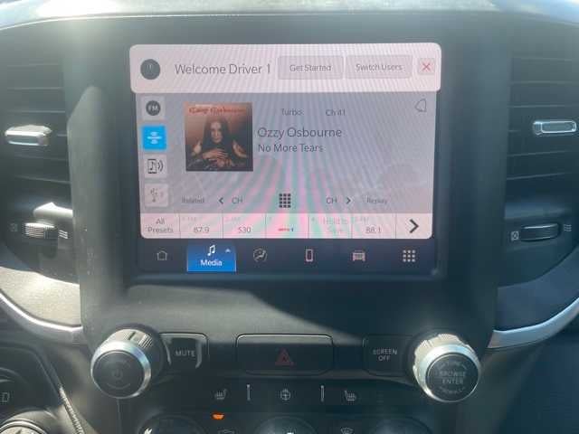 BIG HORN LEVEL 2 EQUIPMENT GROUP Google Android Auto®, USB Host Flip, Power Adjustable Pedals, For More Info, Call 800-643-2112, Front Fog Lamps, Glove Box Lamp, Media Hub w/2 Charge Only USBs, Heated Front Seats, 8.4" Touchscreen Display, Class IV Receiver Hitch, Security Alarm, Black Premium Power Mirrors, Apple CarPlay®, Remote Start System, SiriusXM Satellite Radio, 9 Amplified Speakers w/Subwoofer, 115V Auxiliary Power Outlet, Universal Garage Door Opener, Electric Shift On Demand Transfer Case, 2nd Row In Floor Storage Bins, Sun Visors w/Illuminated Vanity Mirrors, LED Footwell Lighting, Power 2-Way Driver Lumbar Adjust, Bluetooth® Handsfree Phone & Audio, Rear Window Defroster, Integrated Center Stack Radio, ParkSense Front/Rear Park Assist w/Stop, Rear View Auto Dim Mirror, Rear Power, ENGINE: 5.7L V8 HEMI MDS VVT ETORQUE Active Noise Control System, Heavy Duty Engine Cooling, Passive Tuned Mass Damper, Dual Rear Exhaust w/Bright Tips, HEMI Badge, 23 Gallon Fuel Tank, 18" Aluminum Spare Wheel, NIGHT EDITION Tires: 275/55R20 OWL All Season, Bridgestone Brand Tires, Accent Color Premium Power Mirrors, Exterior Mirrors w/Supplemental Signals, Black Headlamp Bezels, Exterior Mirrors Courtesy Lamps, Auto Dim Exterior Driver Mirror, Black Exterior Truck Badging, Anti-Spin Differential Rear Axle, Wheels: 20" x 9.0" Premium Paint/Polished, Accent Color Door Handles, Black Interior Accents, Dual Exhaust w/Black Tips, Power-Folding Mirrors, Body Color Front Bumper, Body Color Rear Bumper w/Step Pads, RAM Grille Badge - Black, Black Painted Exterior Mirrors Caps, TRANSMISSION: 8-SPEED AUTOMATIC (8HP75), BLACK, DELUXE CLOTH BUCKET SEATS Power 8-Way Driver Seat, Center Console Parts Module, Bucket Seats, Manual Adjust 4-Way Front Passenger Seat, Full Length Floor Console, Rear Center Armrest, Power 2-Way Driver Lumbar Adjust.