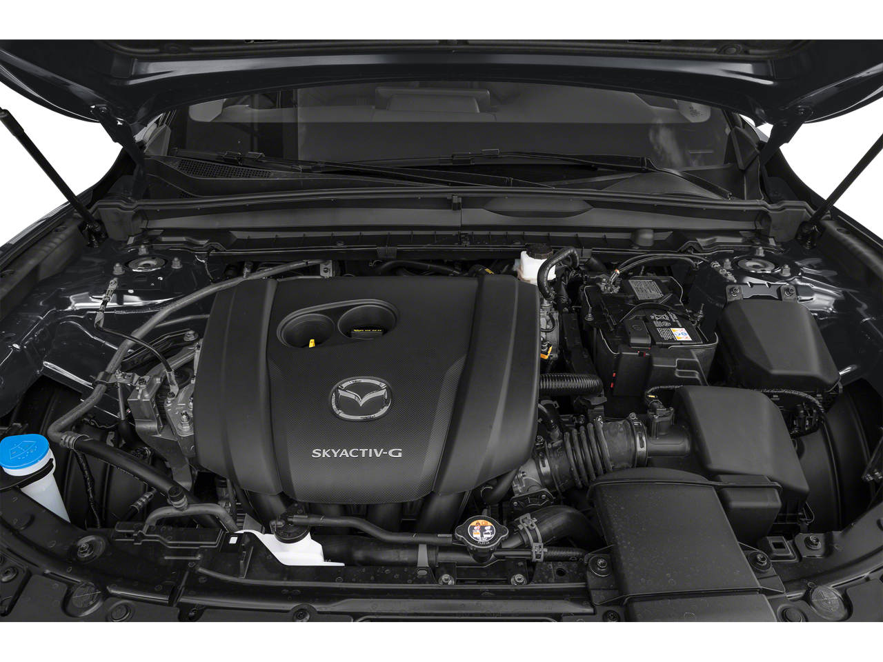 CX-50 2.5 S Preferred Package is nicely equipped with CX-50 2.5 S Preferred Package, 4D Sport Utility, SKYACTIV® 2.5L 4-Cylinder DOHC 16V, 6-Speed Automatic, AWD, Jet Black Mica, Black w/Gray w/Half Leatherette Seat Trim, 4-Wheel Disc Brakes, 8 Speakers, ABS brakes, Air Conditioning, Alloy wheels, AM/FM radio, AppLink/Apple CarPlay and Android Auto, Auto High-beam Headlights, Automatic temperature control, Brake assist, Bumpers: body-color, Delay-off headlights, Driver door bin, Driver vanity mirror, Dual front impact airbags, Dual front side impact airbags, Electronic Stability Control, Emergency communication system: MAZDA CONNECT, Exterior Parking Camera Rear, Front anti-roll bar, Front Bucket Seats, Front Center Armrest, Front dual zone A/C, Front reading lights, Front wheel independent suspension, Fully automatic headlights, Half Leatherette Seat Trim, Heated door mirrors, Heated Front Bucket Seats, Heated front seats, Illuminated entry, Knee airbag, Leather Shift Knob, Leather steering wheel, Low tire pressure warning, Occupant sensing airbag, Outside temperature display, Overhead airbag, Overhead console, Panic alarm, Passenger door bin, Passenger vanity mirror, Power door mirrors, Power driver seat, Power Liftgate, Power steering, Power windows, Radio data system, Radio: AM/FM/HD Audio System, Rain sensing wipers, Rear seat center armrest, Rear window defroster, Rear window wiper, Remote keyless entry, Speed control, Speed-sensing steering, Split folding rear seat, Spoiler, Steering wheel mounted audio controls, Tachometer, Telescoping steering wheel, Tilt steering wheel, Traction control, Trip computer, Turn signal indicator mirrors, Variably intermittent wipers, and Wheels: 17 x 7J Aluminum Alloy.
