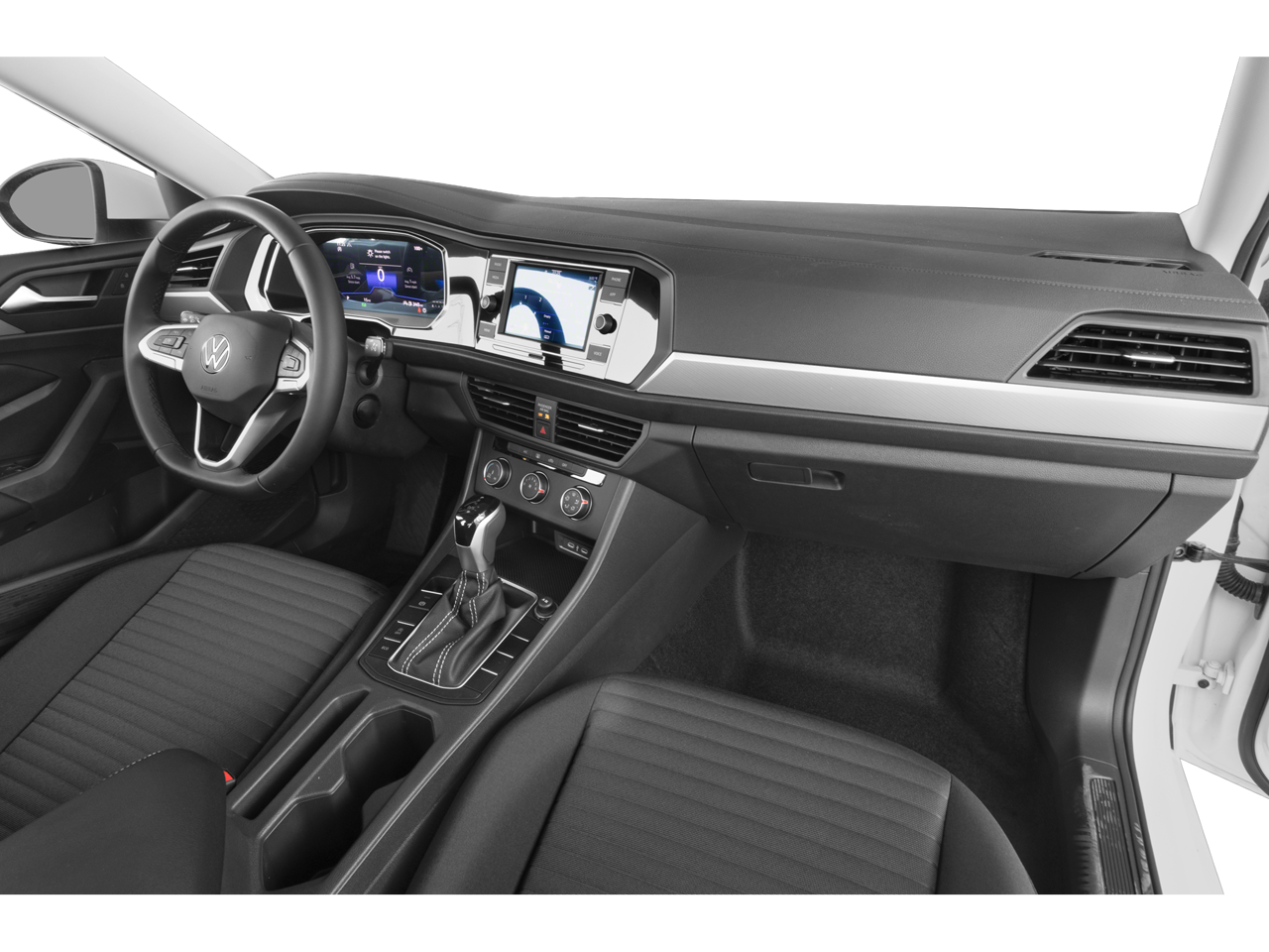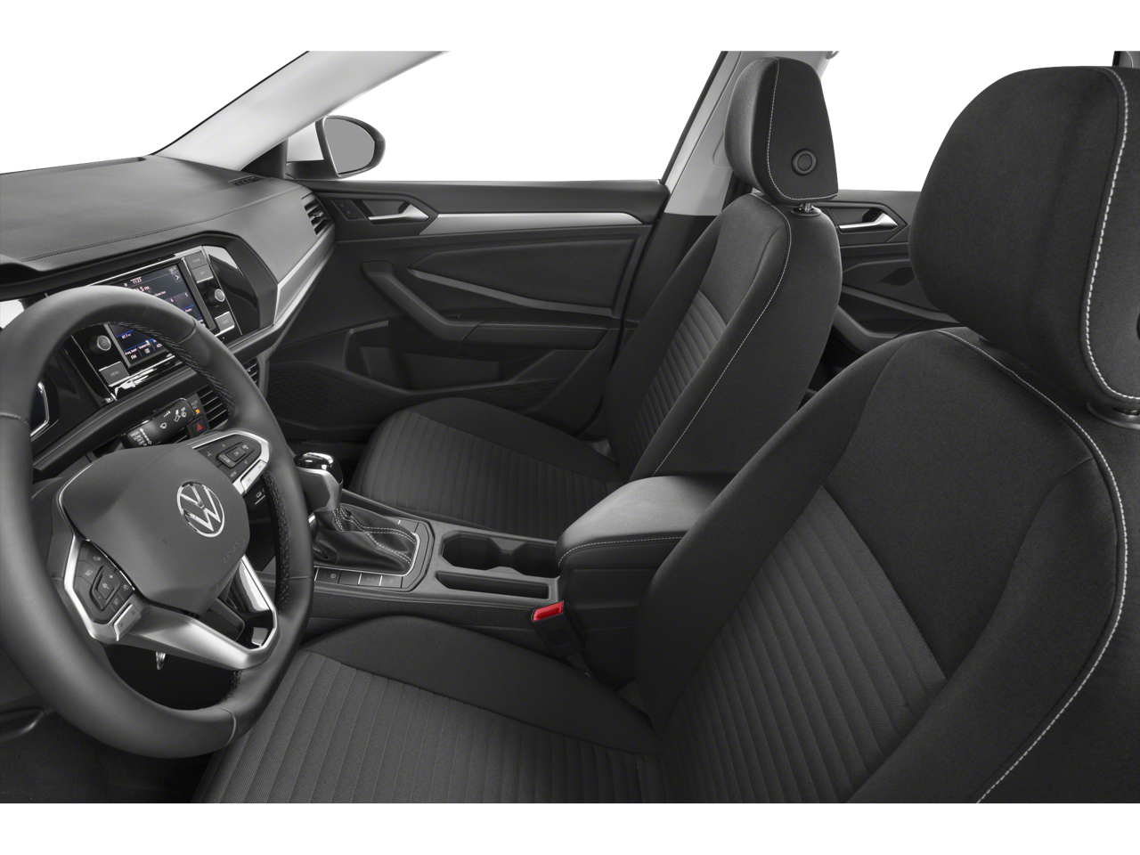 Jetta 1.5T S is nicely equipped with Jetta 1.5T S, 4D Sedan, 1.5L I-4 DI DOHC Turbocharged, 8-Speed Automatic with Tiptronic, FWD, Platinum Gray Metallic, Titan Black w/Cloth Seat Trim, 4 Speakers, 4-Wheel Disc Brakes, ABS brakes, Active Blind Spot Monitor, Air Conditioning, Alloy wheels, Auto-dimming Rear-View mirror, Brake assist, Bumpers: body-color, Cloth Seat Trim, Delay-off headlights, Driver door bin, Driver vanity mirror, Dual front impact airbags, Dual front side impact airbags, Electronic Stability Control, Emergency communication system: VW Car-Net Safe & Secure 5-year, Exterior Parking Camera Rear, Front anti-roll bar, Front Bucket Seats, Front Center Armrest, Front Seats, Front wheel independent suspension, Fully automatic headlights, Heated door mirrors, Illuminated entry, Leather Shift Knob, Leather steering wheel, Low tire pressure warning, Occupant sensing airbag, Outside temperature display, Overhead airbag, Overhead console, Panic alarm, Passenger door bin, Passenger vanity mirror, Power door mirrors, Power steering, Power windows, Radio data system, Radio: MIB3 Composition Color w/6.5 Touchscreen, Rain sensing wipers, Rear anti-roll bar, Rear reading lights, Rear window defroster, Remote keyless entry, Speed control, Speed-sensing steering, Split folding rear seat, Steering wheel mounted audio controls, Tachometer, Telescoping steering wheel, Tilt steering wheel, Traction control, Trip computer, Variably intermittent wipers, and Wheels: 16 2-Tone Machined Alloy.