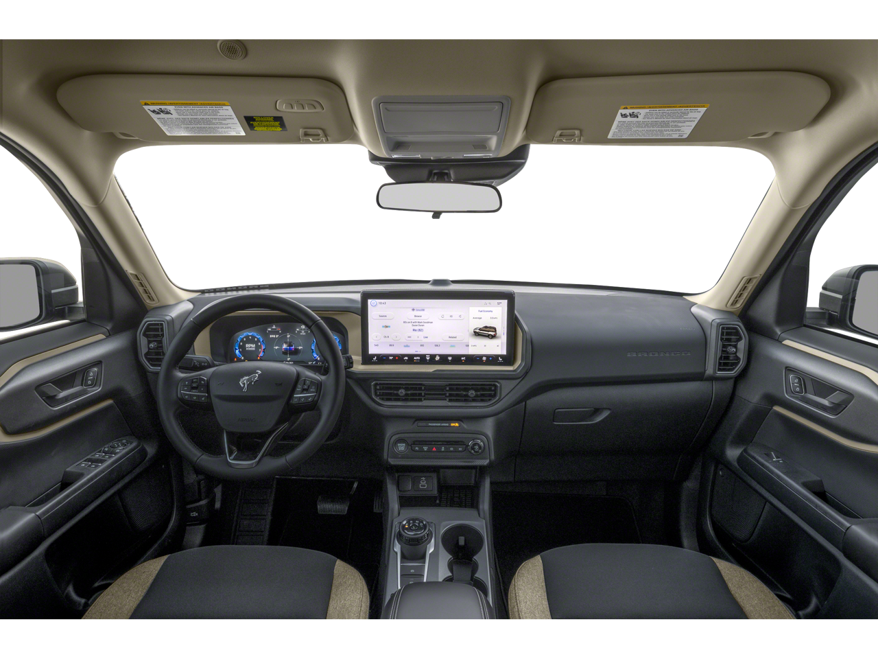 Bronco Sport Big Bend is nicely equipped with Bronco Sport Big Bend, 4D Sport Utility, 1.5L EcoBoost, 8-Speed Automatic, 4WD, Eruption Green Metallic, Medium Light Smoked Truffle w/Cloth with Easy-to-Clean Front Bucket Seats, 4-Wheel Disc Brakes, 6 Speakers, ABS brakes, Air Conditioning, Alloy wheels, AM/FM radio: SiriusXM, AM/FM Stereo, Auto High-beam Headlights, Automatic temperature control, Brake assist, Cloth w/Easy-to-Clean Front Bucket Seats, Compass, Delay-off headlights, Driver door bin, Driver vanity mirror, Dual front impact airbags, Dual front side impact airbags, Electronic Stability Control, Emergency communication system: SYNC 4 911 Assist, Four wheel independent suspension, Front anti-roll bar, Front Bucket Seats, Front Center Armrest, Front reading lights, Fully automatic headlights, Heated door mirrors, Illuminated entry, Knee airbag, Low tire pressure warning, Occupant sensing airbag, Outside temperature display, Overhead airbag, Overhead console, Panic alarm, Passenger door bin, Passenger vanity mirror, Power door mirrors, Power steering, Power windows, Radio data system, Rear anti-roll bar, Rear Parking Sensors, Rear reading lights, Rear seat center armrest, Rear window defroster, Rear window wiper, Remote keyless entry, Security system, SiriusXM, Speed control, Speed-sensing steering, Speed-Sensitive Wipers, Split folding rear seat, Steering wheel mounted audio controls, SYNC 4 w/Enhanced Voice Recognition, Tachometer, Telescoping steering wheel, Tilt steering wheel, Traction control, Trip computer, Variably intermittent wipers, and Wheels: 17 Carbonized Gray-Painted Aluminum.