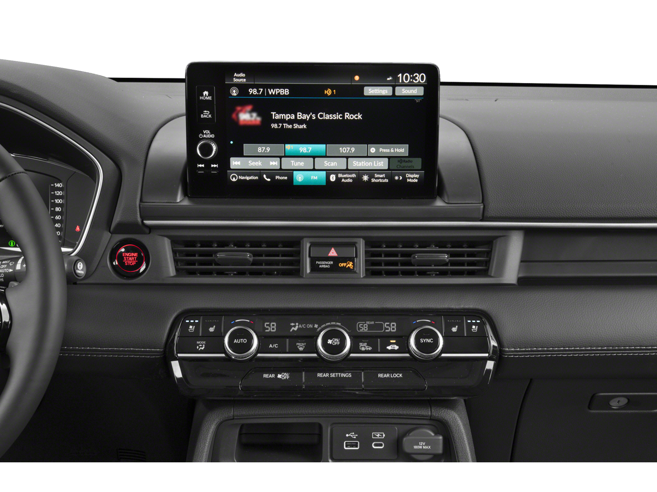 - Radio: Bose Premium Sound System -inc: 12 speakers w/subwoofer, 9" color touchscreen, Bluetooth® HandsFreeLink and streaming audio, Radio Data System (RDS), Speed-Sensitive Volume Compensation (SVC), wireless Apple CarPlay and Android Auto compatibility, Wi-Fi hotspot capability (requires AT&T data plan), SMS text message function (Your wireless carrier's rate plans apply, State or local laws may limit use of texting feature.), HD Radio, 2.5-amp USB type-A smartphone/audio interface port in front console, multi-zone audio and CabinTalk in-car PA system