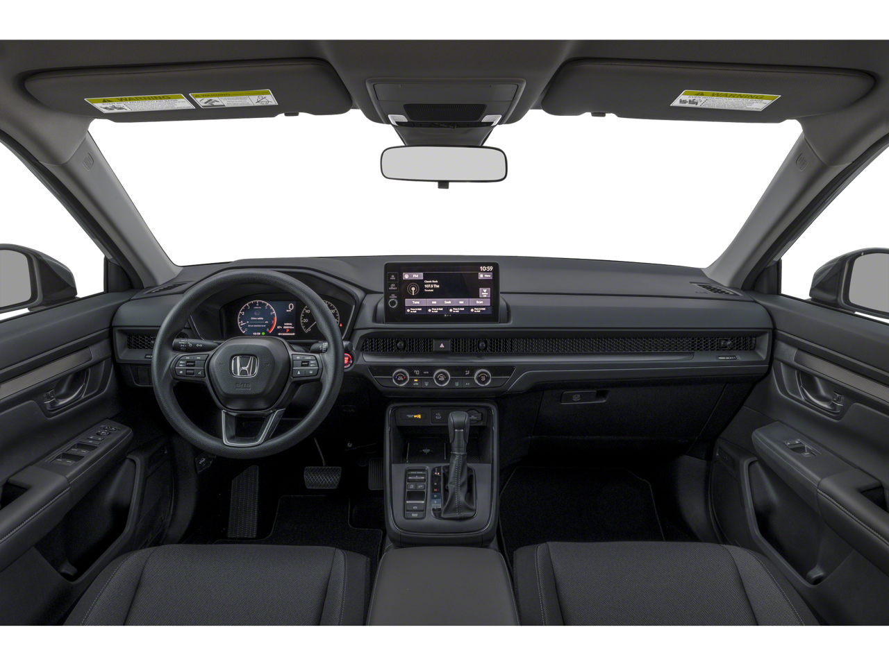 CR-V LX is nicely equipped with CR-V LX, 4D Sport Utility, 1.5L I4 DOHC 16V, CVT, FWD, Black, Gray Cloth, ABS brakes, Active Cruise Control, Compass, Electronic Stability Control, Illuminated entry, Low tire pressure warning, Remote keyless entry, Traction control, 4 Speakers, 4-Wheel Disc Brakes, Adaptive Cruise Control: Adaptive Cruise Control (ACC) with Low-Speed Follow, Air Conditioning, AM/FM radio, Apple CarPlay/Android Auto, Auto High-beam Headlights, Automatic temperature control, Brake assist, Bumpers: body-color, Cloth Seat Trim, Delay-off headlights, Driver door bin, Driver vanity mirror, Dual front impact airbags, Dual front side impact airbags, Exterior Parking Camera Rear, Four wheel independent suspension, Front anti-roll bar, Front Bucket Seats, Front Center Armrest, Front reading lights, Fully automatic headlights, Knee airbag, Occupant sensing airbag, Outside temperature display, Overhead airbag, Overhead console, Panic alarm, Passenger door bin, Passenger vanity mirror, Power door mirrors, Power steering, Power windows, Radio data system, Radio: 160-Watt AM/FM Audio System, Rear anti-roll bar, Rear reading lights, Rear seat center armrest, Rear side impact airbag, Rear window defroster, Rear window wiper, Security system, Speed control, Speed-sensing steering, Speed-Sensitive Wipers, Split folding rear seat, Spoiler, Steering wheel mounted audio controls, Tachometer, Telescoping steering wheel, Tilt steering wheel, Trip computer, Turn signal indicator mirrors, Variably intermittent wipers, and Wheels: 17 Steel with Covers.
